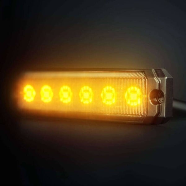 Oranje Waarschuwingslicht10-32V, 6,5W, IP69K6 LED, 4 patronenE-Gekeurd, ECE R65, ECE R10Afm. L120xH28xD8mm (CC 110mm), 60cm kabel